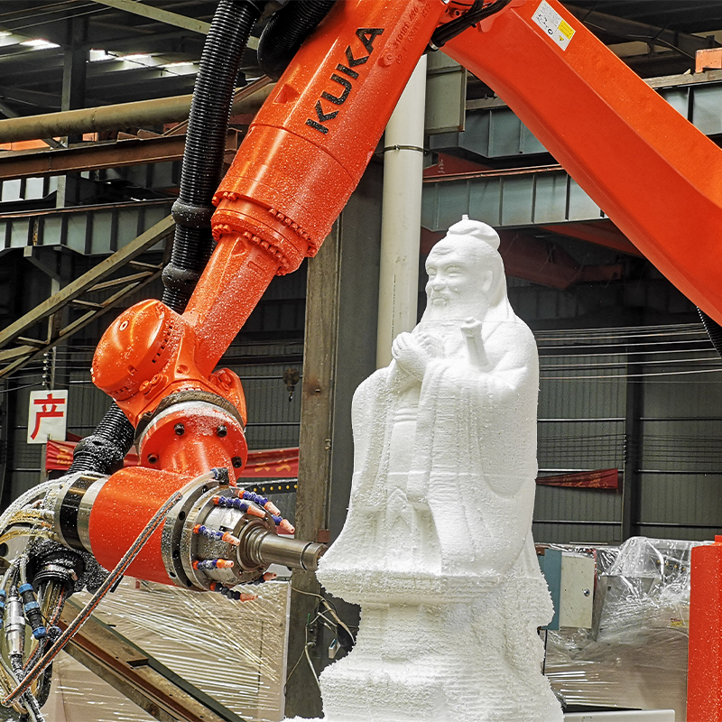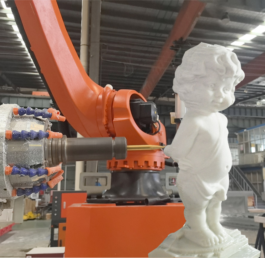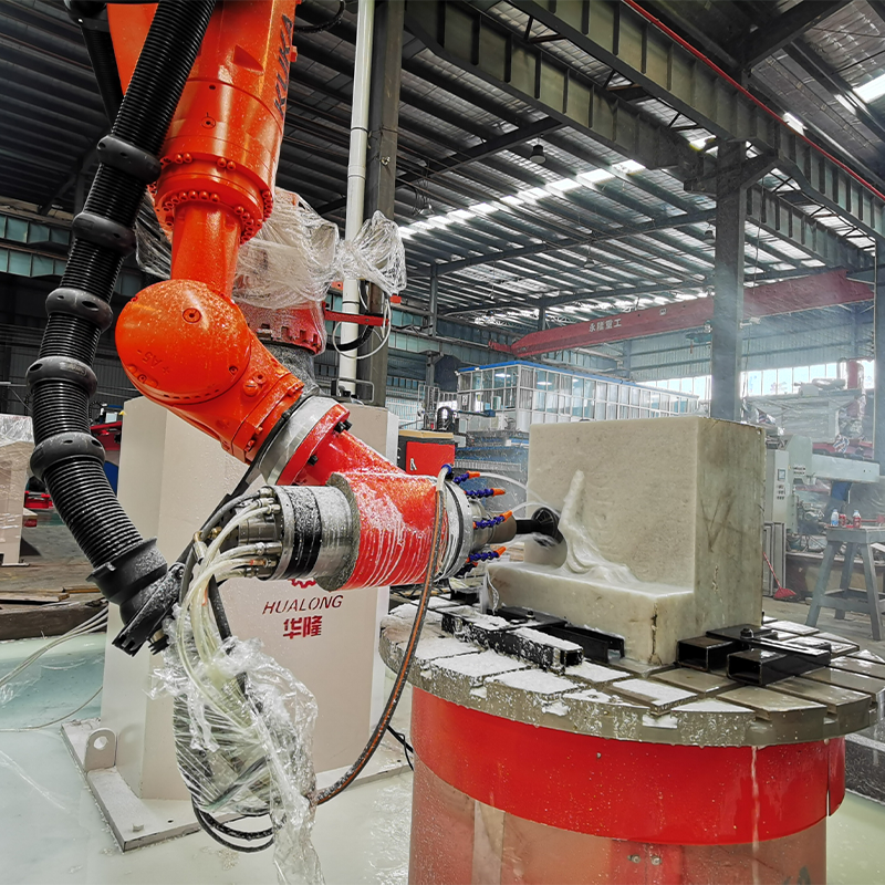 7-осевой робот HLRB-7A3D в сочетании с технологией 3D-сканирования позволяет достичь высокой эффективности и точности в гравировке и обработке камня, особенно выделяясь при гравировке сложных 3D-форм.
